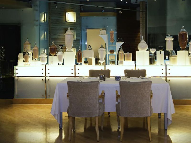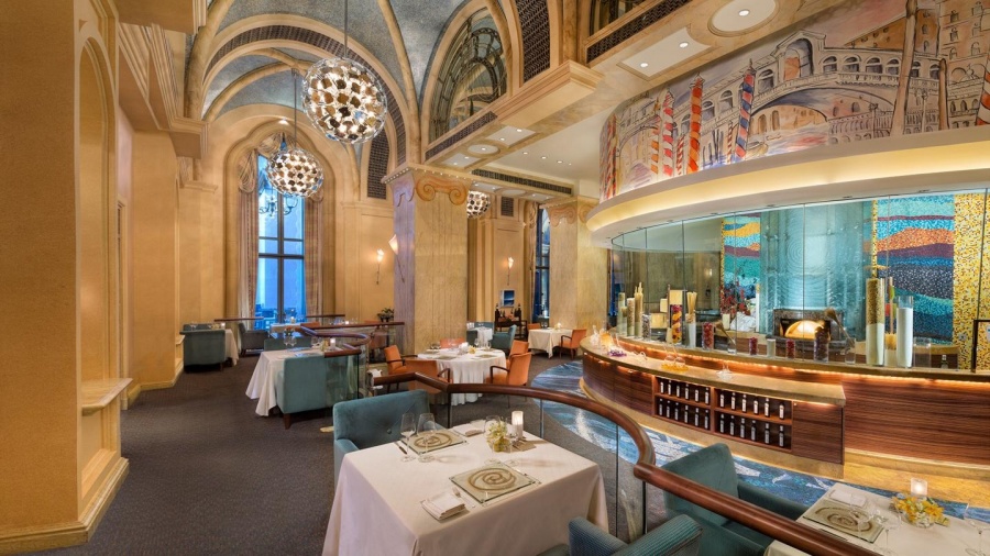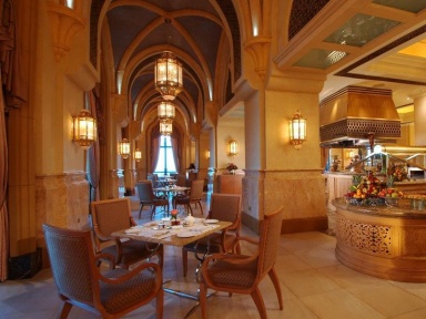 Интерьер ресторана со снежно-белой отделкой напоминает вид Персидского залива с его голубизной. Sayad – экстравагантное наслаждение.Sayad имеет закрытый зал (65 мест) и открытую террасу (45 мест) в дополнение к трем индивидуальным обеденным залам, каждый из которых может вместить до 8 гостей. Ресторан расположен на первом этаже Паласа с видом на пляж.